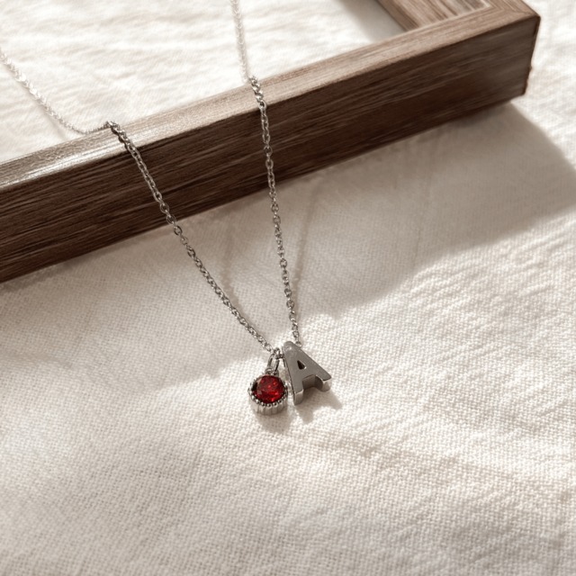 選べる誕生石カラーのジルコニアとイニシャルのチョーカーネックレス。 指先にちょこんと乗る 小さなイニシャルチャームは ころんとしたシンプルなフォントで、おしゃれな印象を与えてくれます。 その隣で輝くのは 誕生石カラーのジルコニア。 ぽこぽことタルトのように愛らしい石座に包まれて、首もとでそっと光を放ちます。 光を受けるたびにきらめいて、心まで明るくしてくれるような存在感です。 「自分のために選ぶ」のはもちろん、大切な人や推しのイニシャル、誕生月を選ぶのもおすすめです。 身につけるたびにその人の存在を思い出して、ちょっぴり心が温まる——そんな小さな魔法をかけてくれるチョーカーネックレスです。 小ぶりで可愛いから、毎日のお洋服にすっと馴染んでくれるのも嬉しいポイント。 お守りのように、ずっと一緒にいたくなる特別なネックレスです。 ▼ゴールドのネックレスはこちら https://kochawoirete.base.shop/items/119565061 【着用画像】 3枚目▶35㎝ 5枚目▶40㎝ ―――――――――――――――――――― 【選べるジルコニア】 ①1月:ガーネット ②2月:アメジスト ③3月:アクアマリン ④4月:ダイアモンド ⑤5月:エメラルド ⑥6月:アレキサンドライト ⑦7月:ルビー ⑧8月:ペリドット ⑨9月:サファイヤ ⑩10月:ローズクォーツ ⑪11月:トパーズ ⑫12月:タンザナイト サイズ:4㎜ 材質:サージカルステンレス(台座) キュービックジルコニア ※天然石ではありません 【イニシャルチャーム】 約5×8㎜の小さめサイズで、上品で洗練された印象に。 材質:サージカルステンレス(SUS316L) ※ゴールド:ニッケルフリーメッキコーティング 【ネックレス】 サイズ:35㎝、40㎝、45㎝、50㎝ 材質:サージカルステンレス(SUS316L) ※ゴールド:ニッケルフリーメッキコーティング 【留め具】 通常:カニカン(サージカルステンレス) オプション:マグネット(サージカルステンレス) マグネット留め具は腕が上がりにくい方でもワンタッチで簡単に着けられます。 【スライドアジャスター】 オプションにてありを選択していただくと 首に沿う長さ~チェーンの長さまで自由に調整可能になります。 ―――――――――――――――――――― ◼️金属アレルギー対応 チェーンと金具はサージカルステンレス(316L)を使用しており、 比較的アレルギーが起きにくい素材です。 さらに発送前にアレルギー防止用のコーティング剤を塗っているため より安心して身に着けられます。 ◼️つけっぱなしOK チェーンはサージカルステンレスのため、 水や汗にも強いため、つけっぱなしでも美しさが長持ち。 夏の暑い日やお風呂でも、外す手間なくおしゃれを楽しめます。 ◼️お手入れ方法 サージカルステンレス製なので、基本的に特別なお手入れは不要です。 汚れが気になる場合は、水で軽くすすいで柔らかい布で拭き取ると、より長くきれいに使えます。 温泉や塩素の強いプールでは、変色を防ぐために外すのがおすすめです。