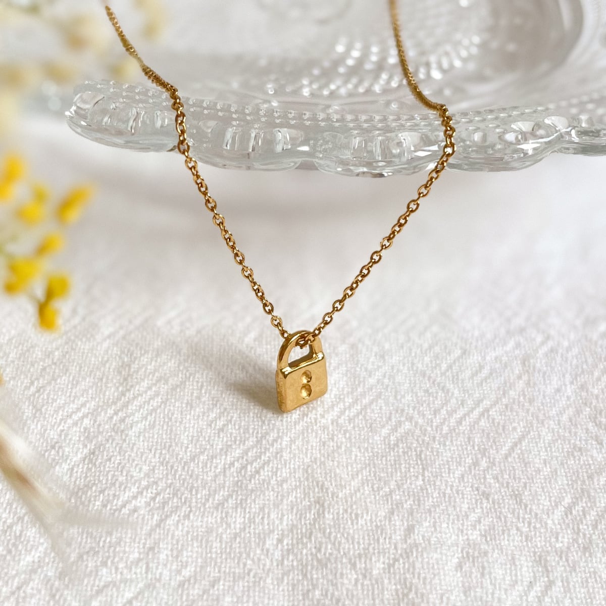 華奢なチェーンにちょこんとついた南京錠モチーフが、