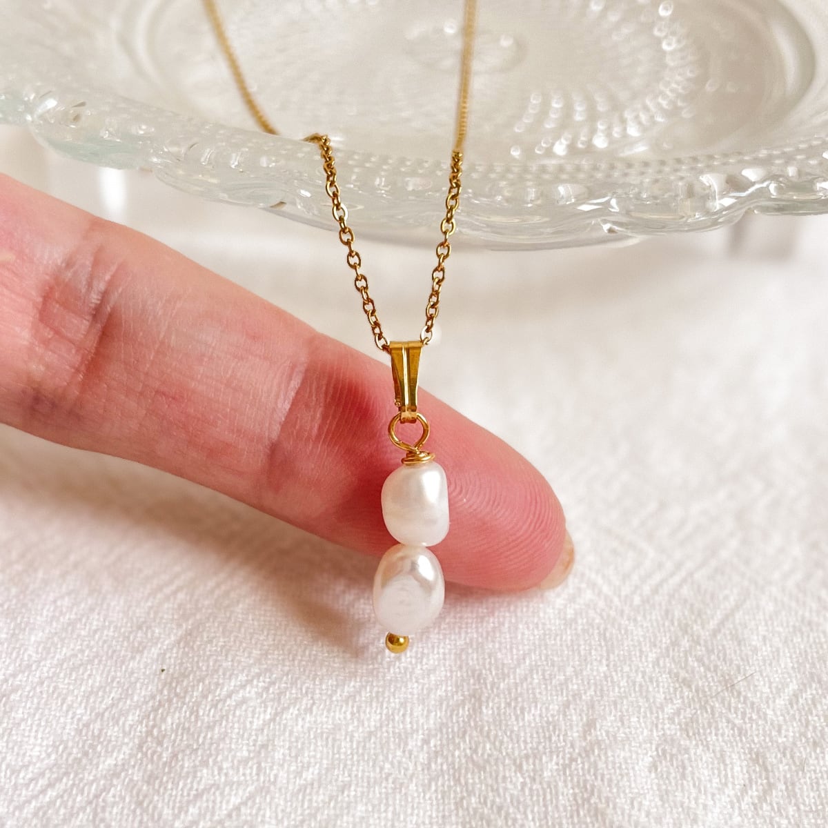 そんな淡水パールを、縦に2粒つなげて仕立てた