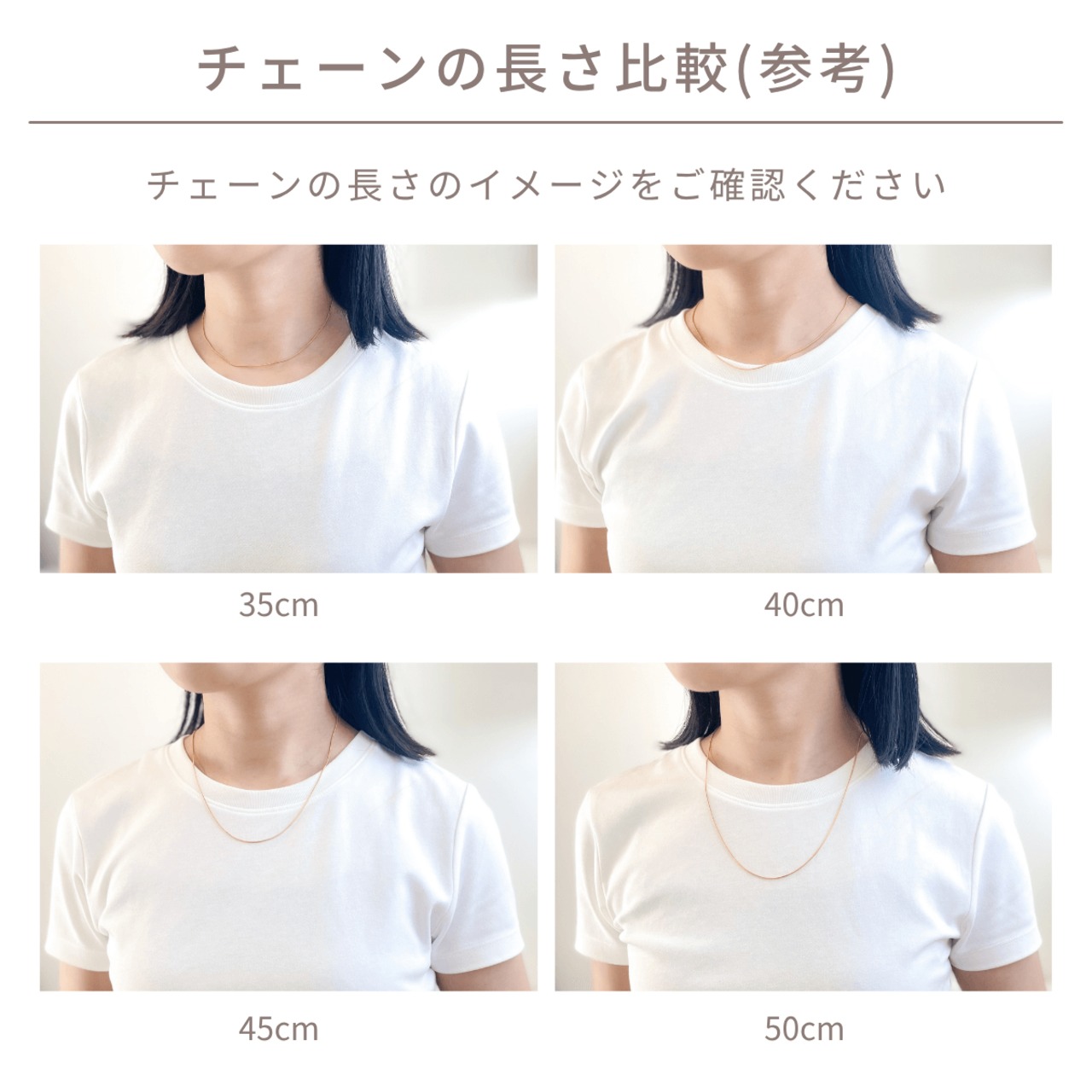 首に沿う長さ~チェーンの長さまで自由に調整可能になります。