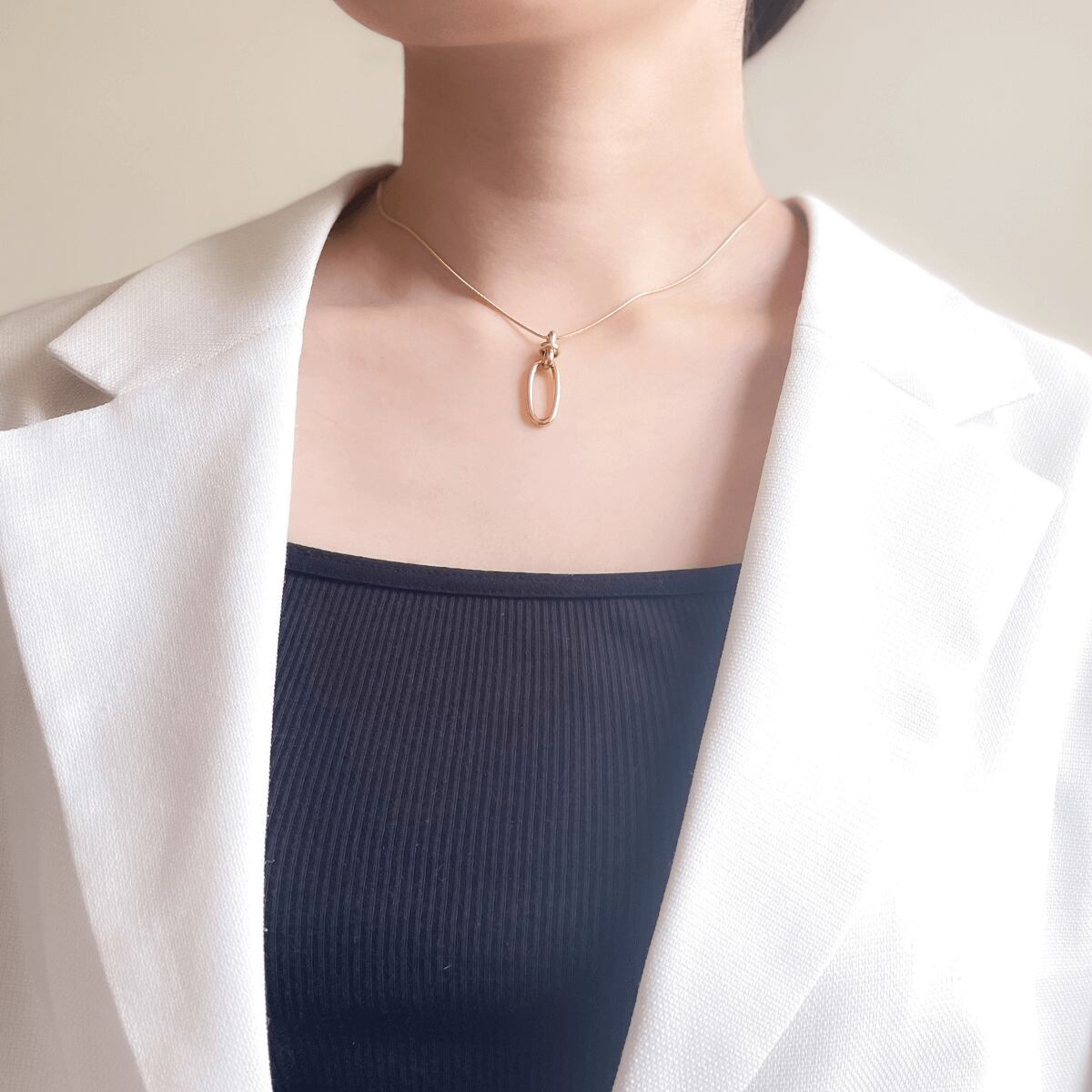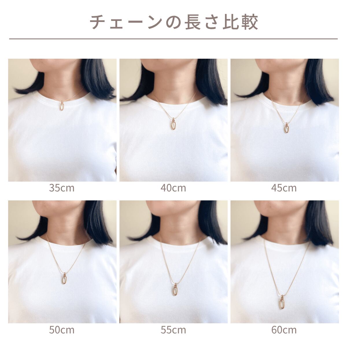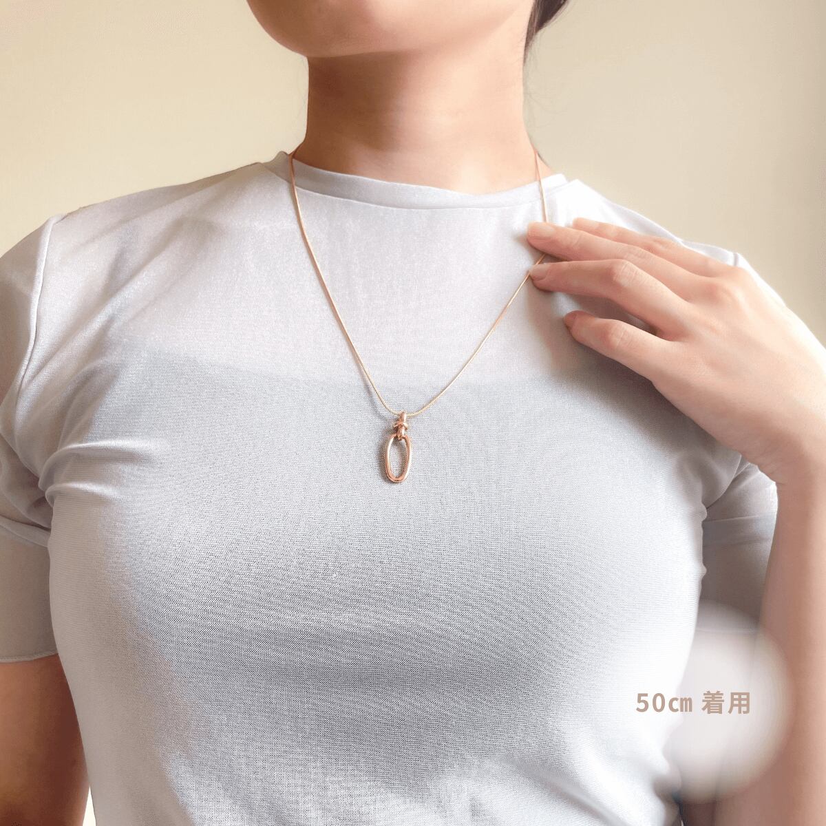 首に沿う長さ~チェーンの長さまで自由に調整可能になります。