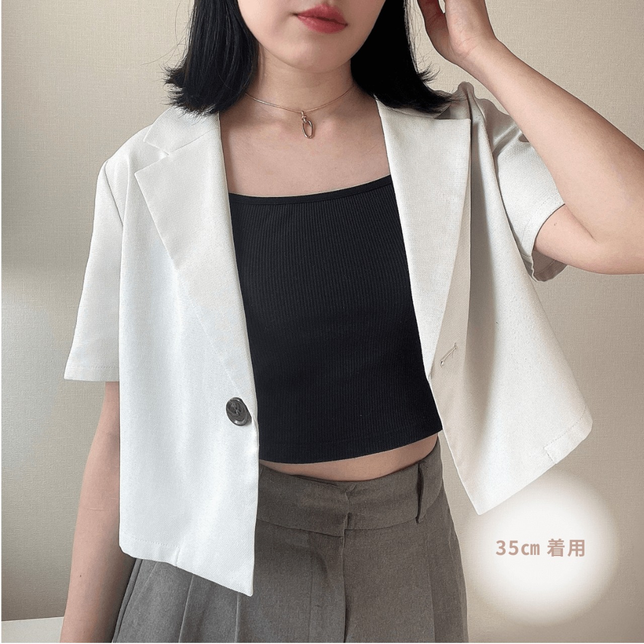 Tシャツやシャツ、ワンピースなど、どんな装いにも似合うのが魅力です。