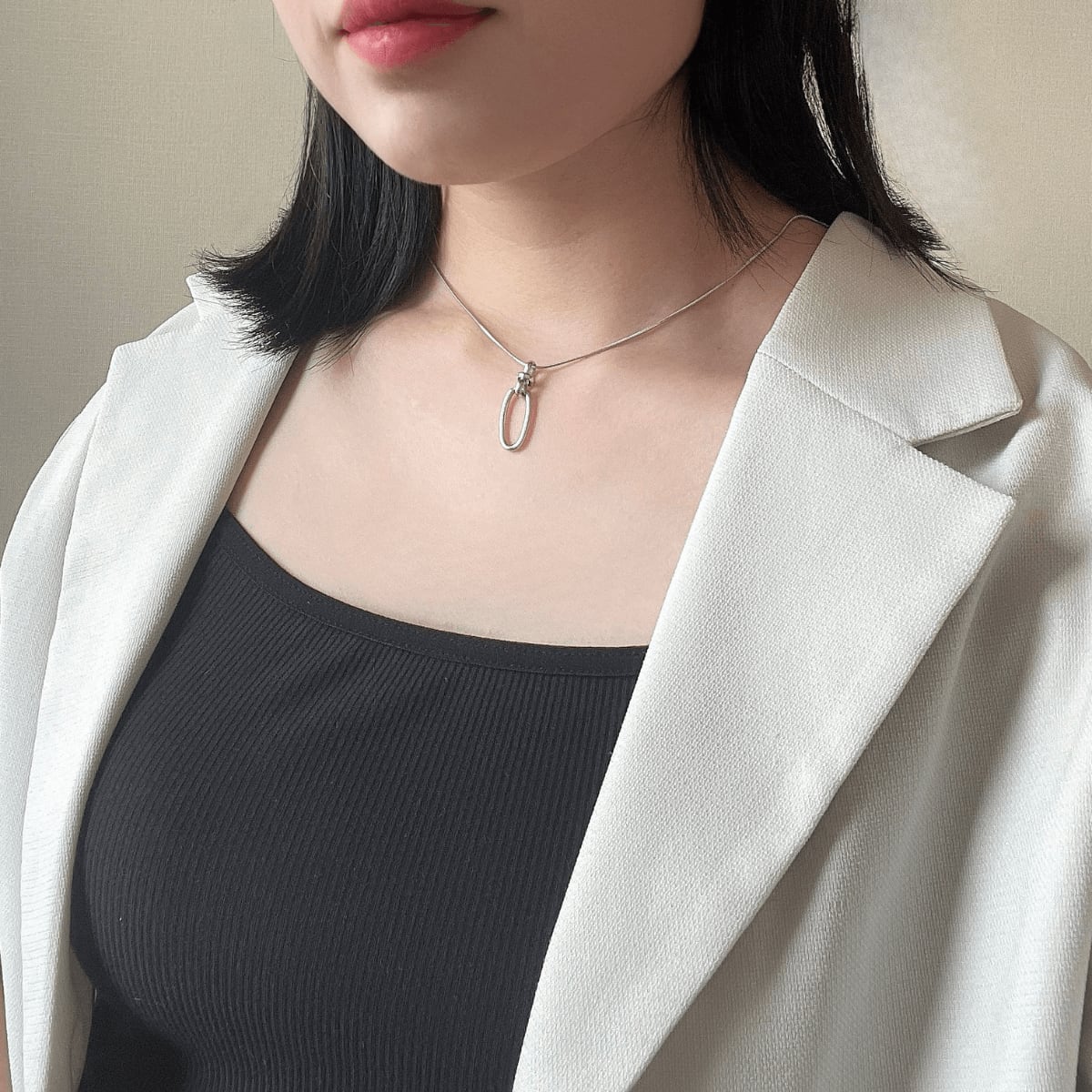 首に沿う長さ~チェーンの長さまで自由に調整可能になります。