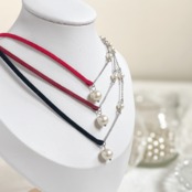 スエード紐のしっとりとした質感と、チェーンの繊細な輝き。