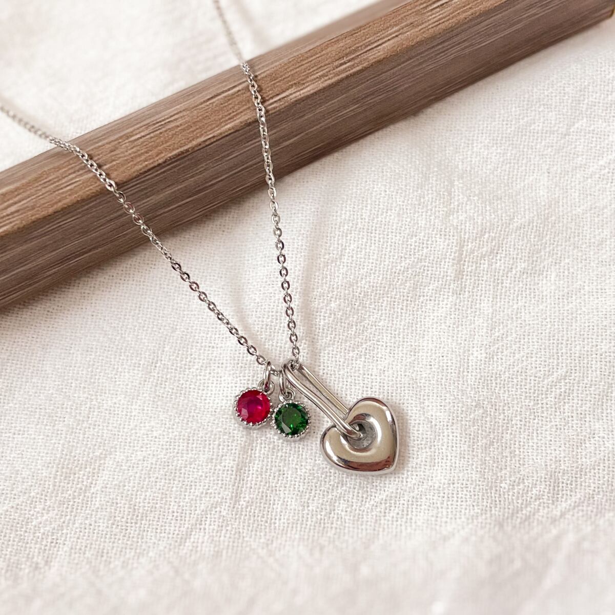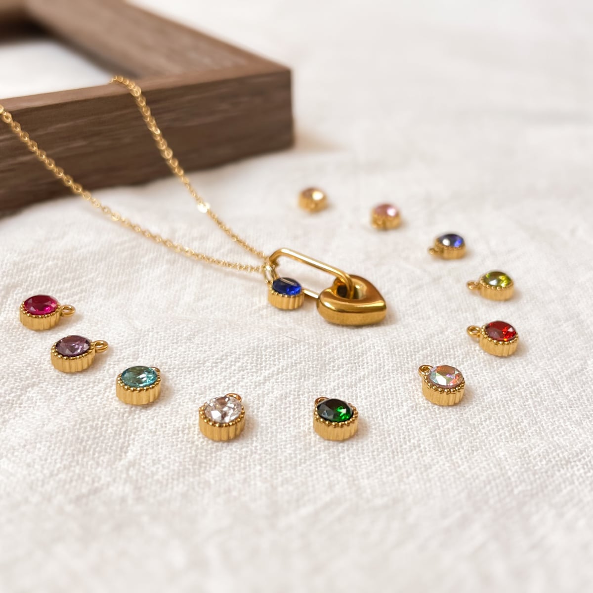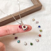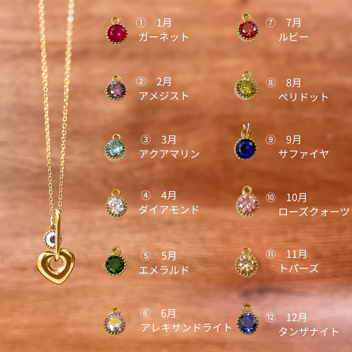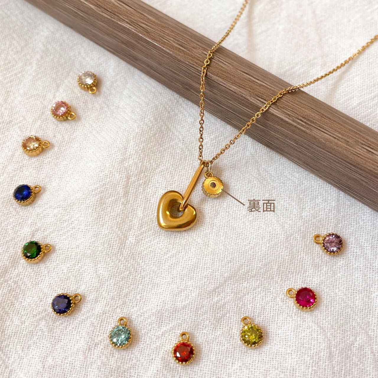 ぷっくりとした可愛らしいハートに、小さな誕生石カラーのジルコニアを一粒添えました。