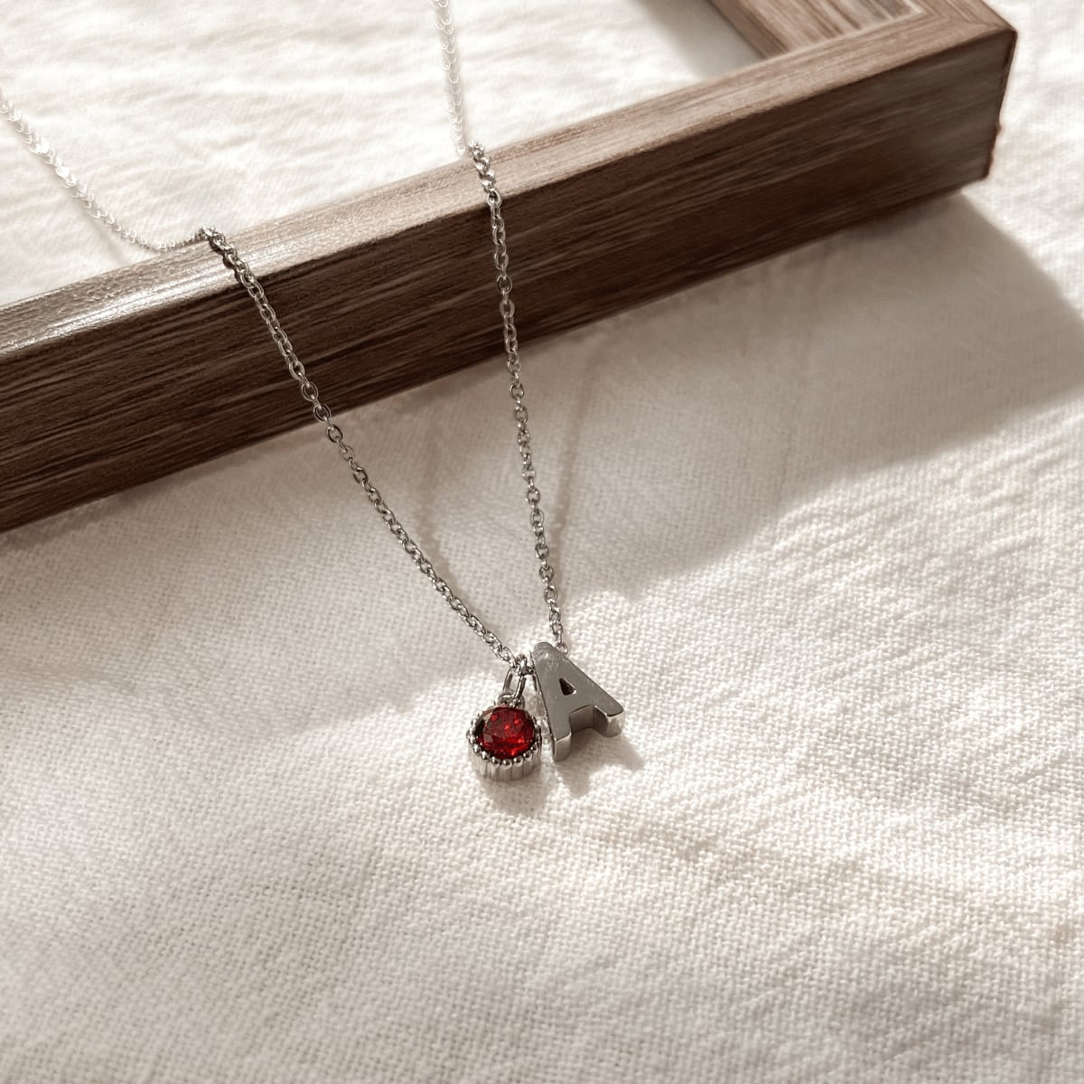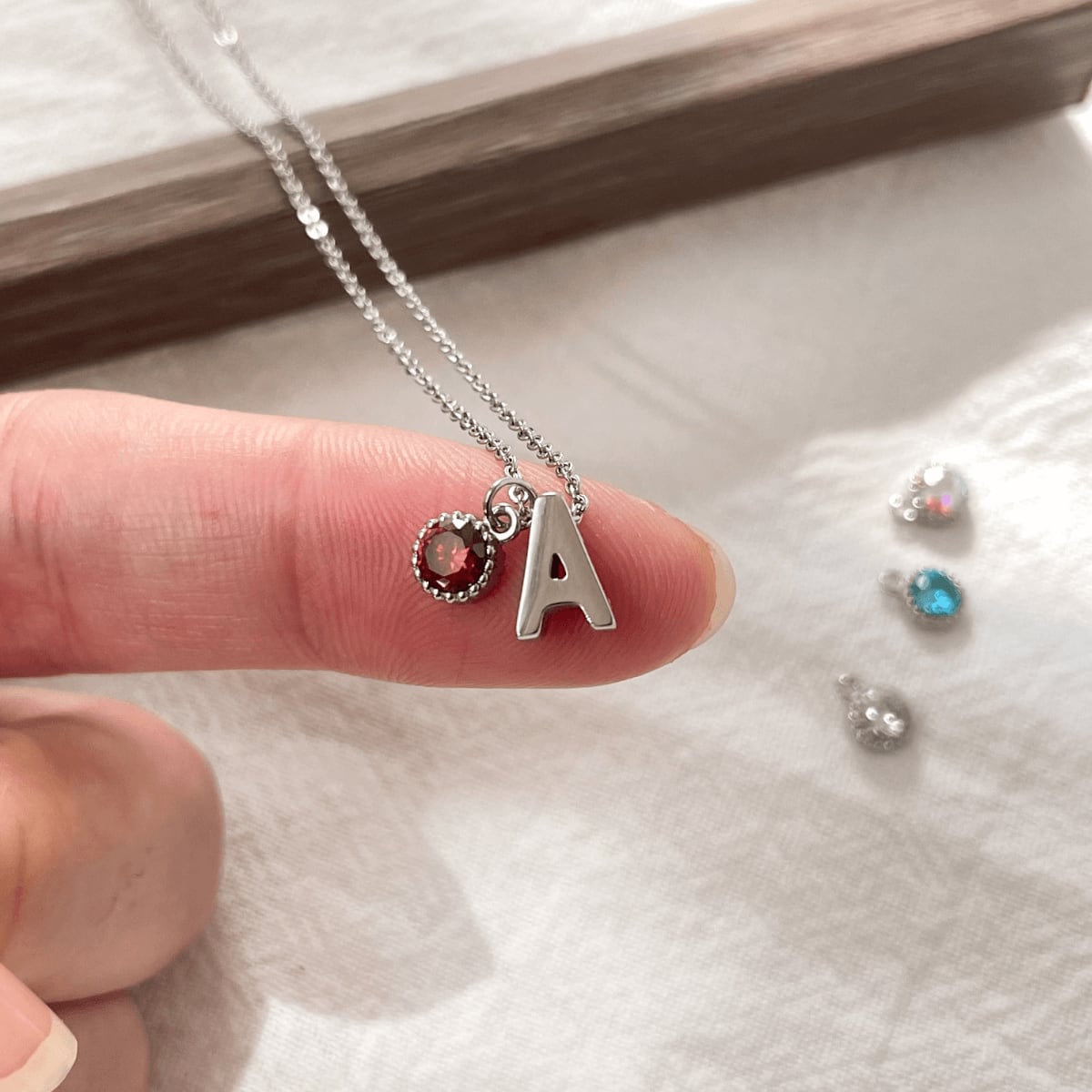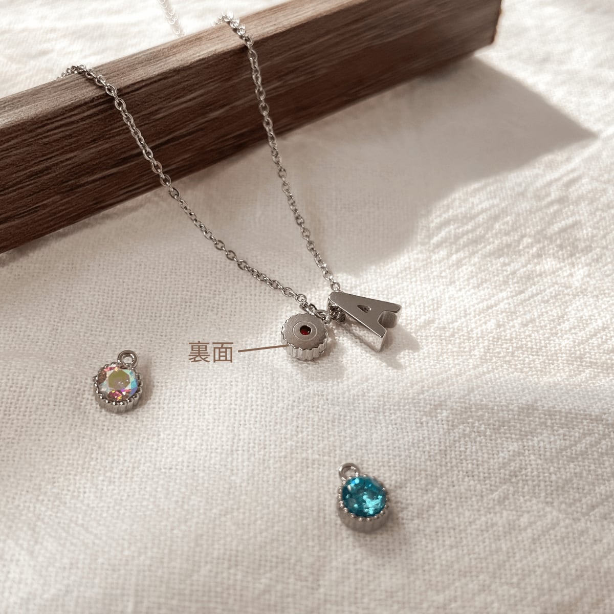 選べる誕生石カラーのジルコニアとイニシャルのチョーカーネックレス。