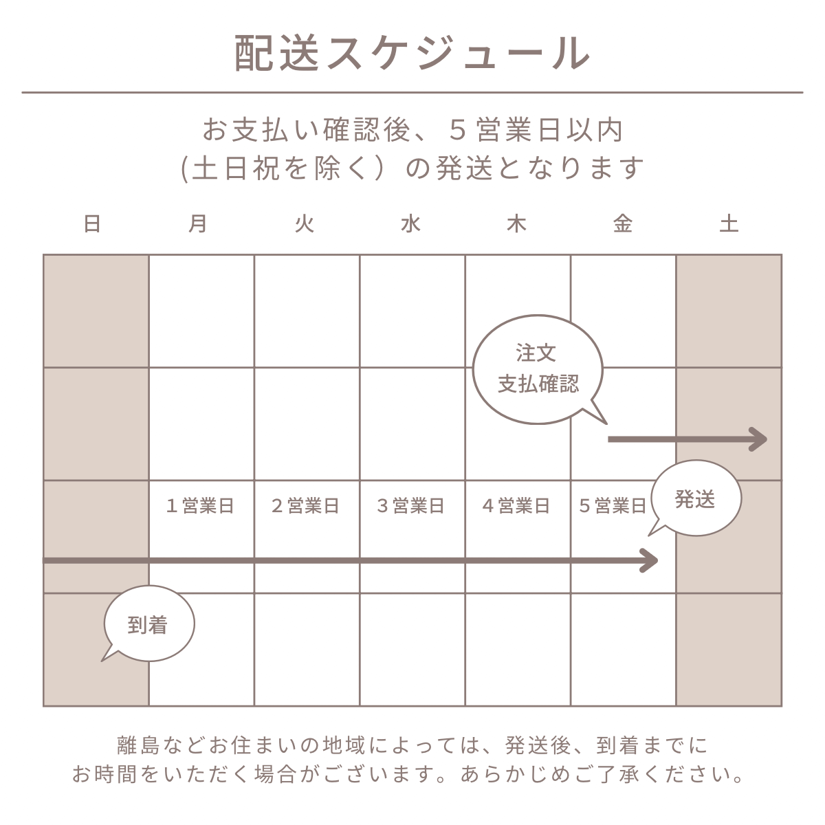 ご注文日より5営業日以内に発送いたします。(土日祝は休業日のため営業日に含まれません)
