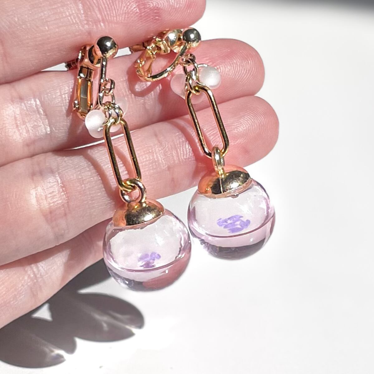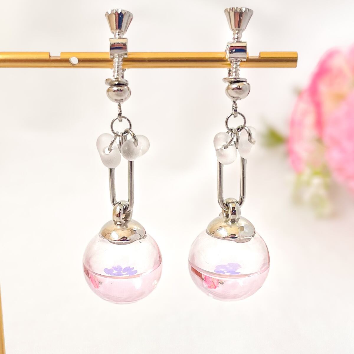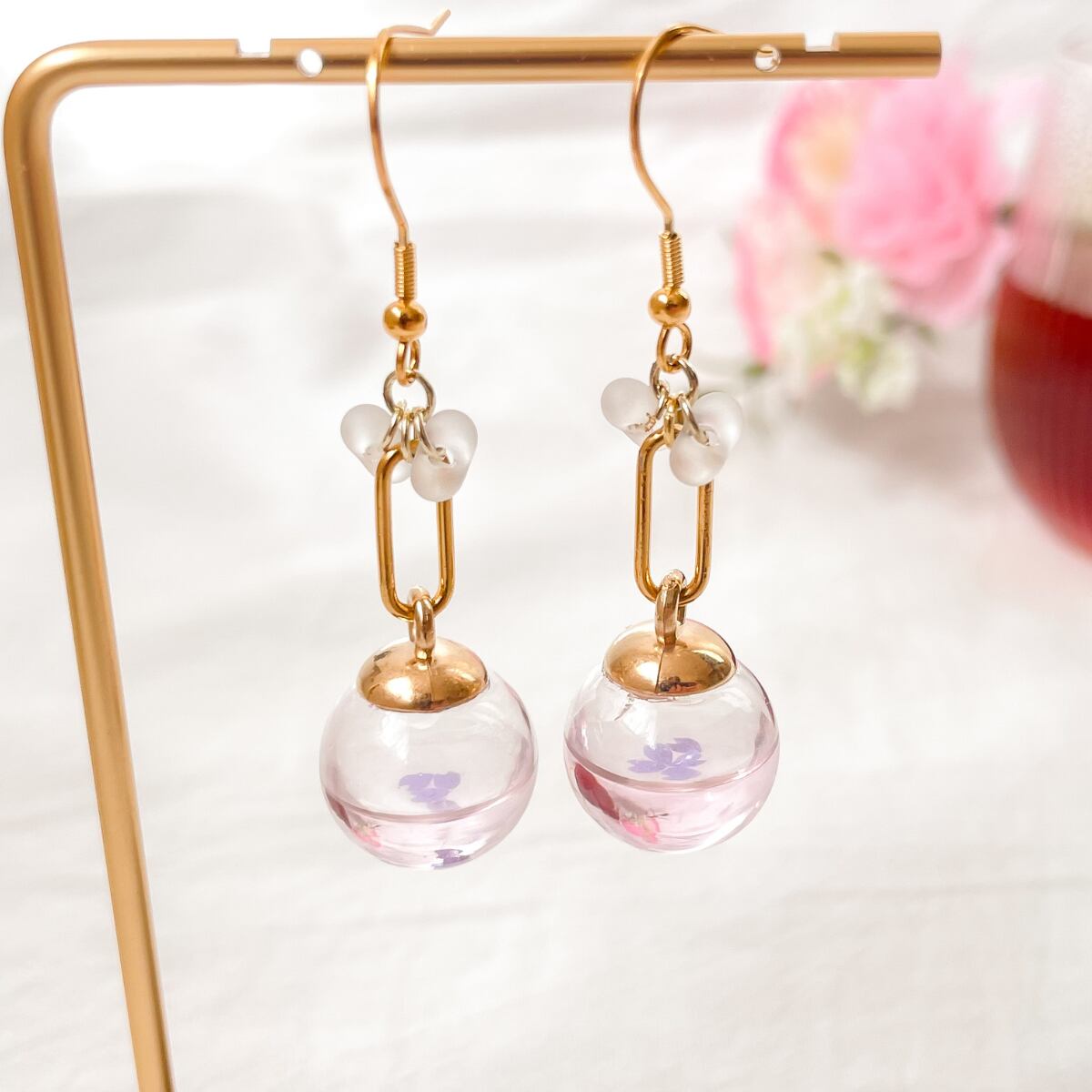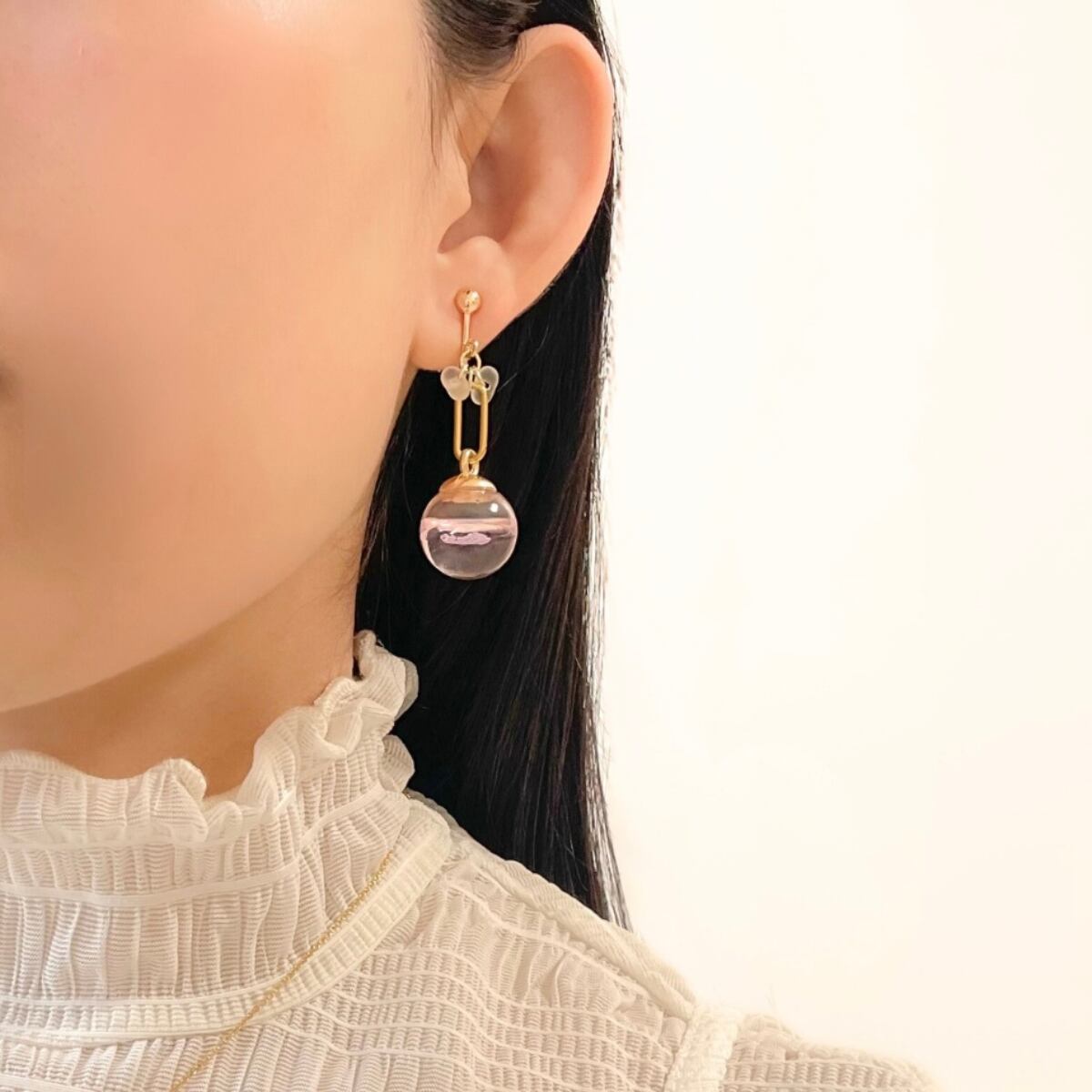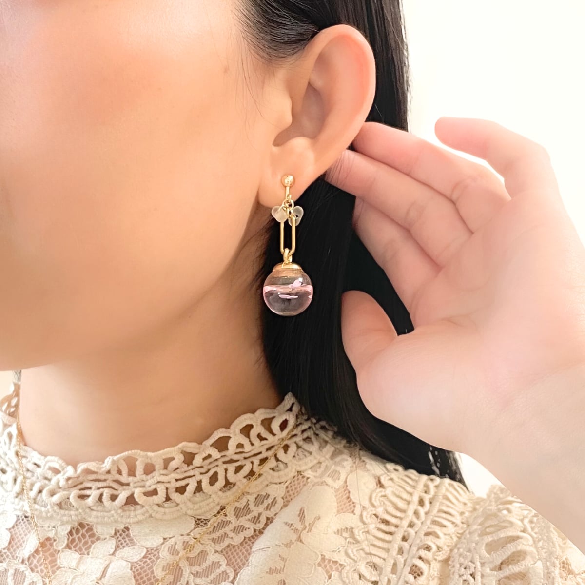 耳元でゆらゆら揺れるたびに、春の空気を閉じ込めたようなやさしい輝きを見せてくれます。