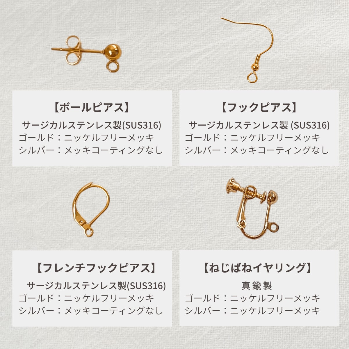 ※ゴールドはニッケルフリーメッキ、シルバーはメッキなしの無垢素材です。