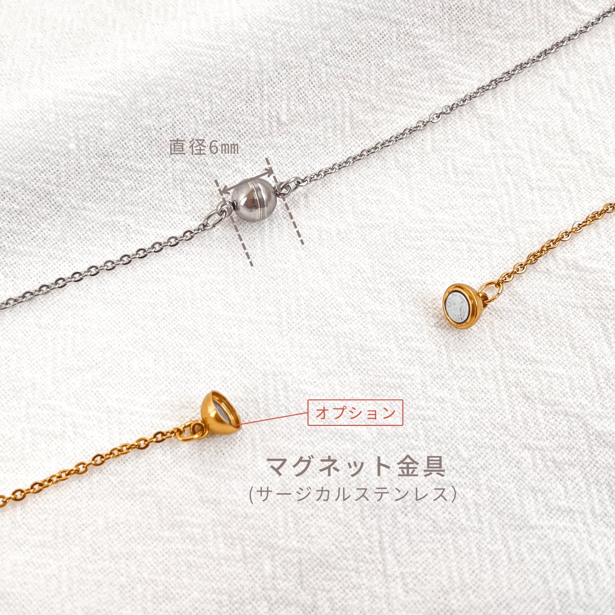 マグネット金具は、サージカルステンレス製の特殊な高品質パーツを使用しているため有料ですが、朝の準備をスムーズにしたい方からとっても喜ばれています。