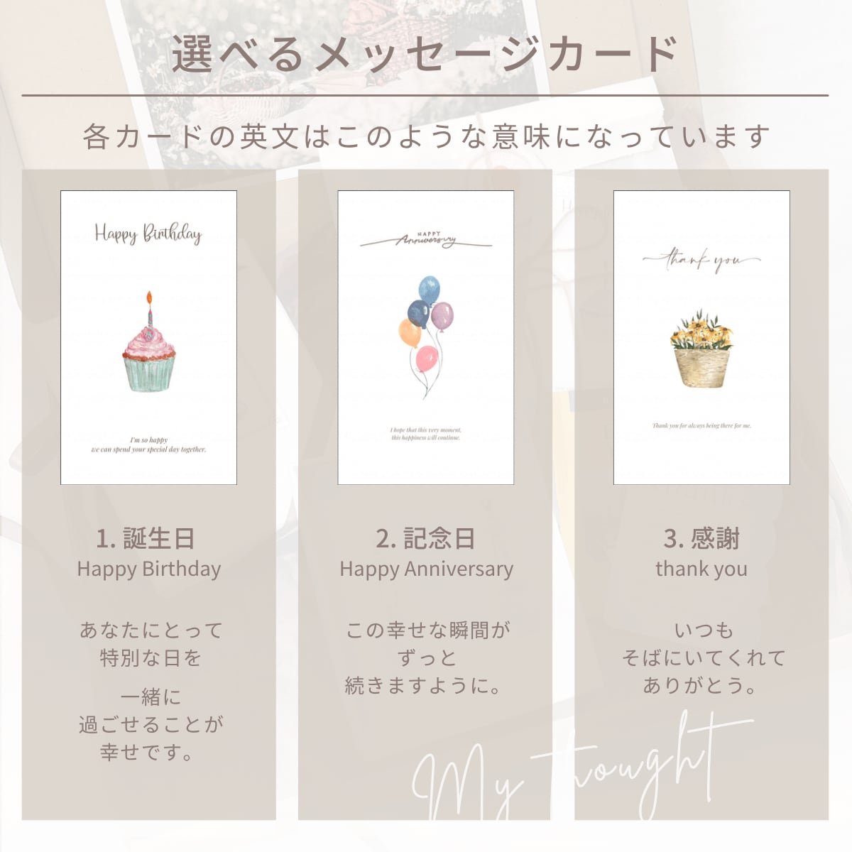 ・メッセージカード(「誕生日」「記念日」「感謝」からお選びいただけます)