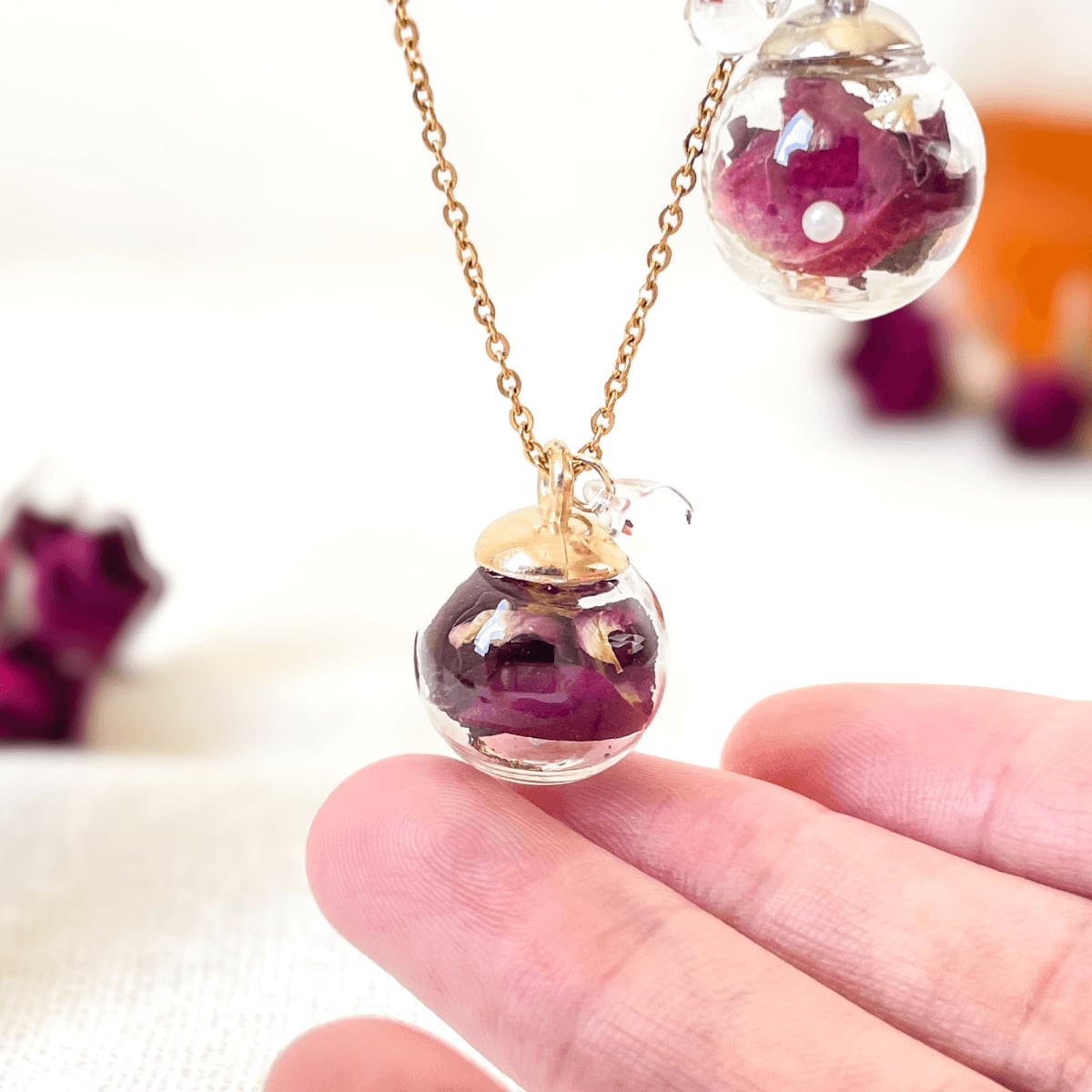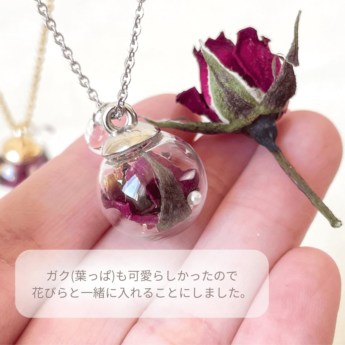 本物のバラが揺れるティーポットネックレス サージカルステンレス