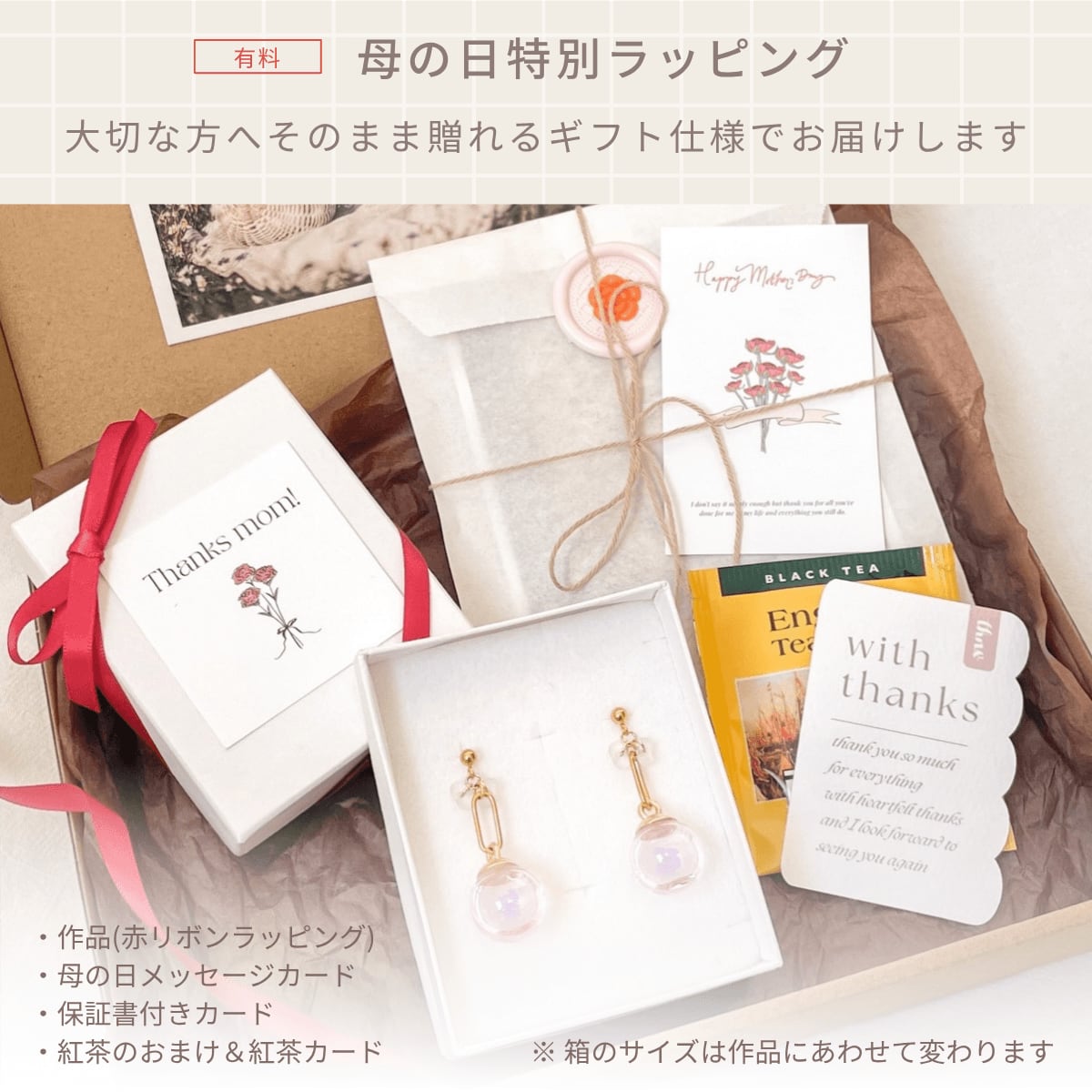 ネックレスとお揃いで楽しめる、バラ紅茶のイヤリング・ピアスもご用意しました。